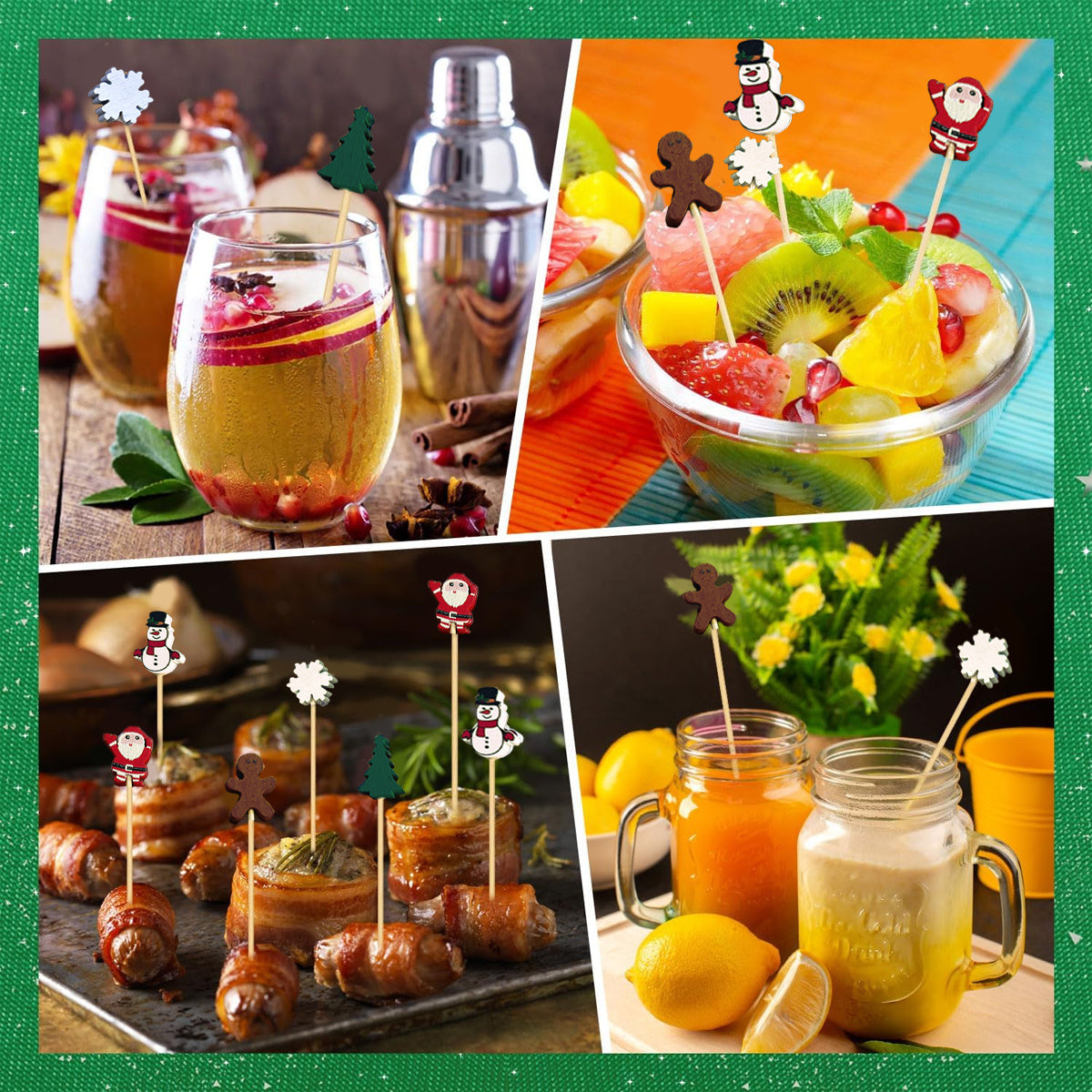 Add a festive touch to your holiday treats with these 100 PCS Christmas cupcake toppers & food picks. Featuring Santa, snowmen, Christmas trees, gingerbread men, and snowflakes, these decorative picks are perfect for cupcakes, cakes, fruit, appetizers, and party snacks.